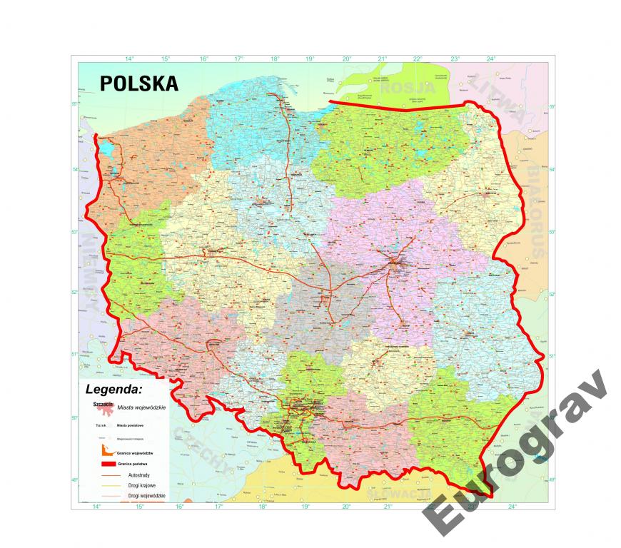 Mapa Administracyjno Drogowa Polski Stan Na 2019 Mapa Scienna